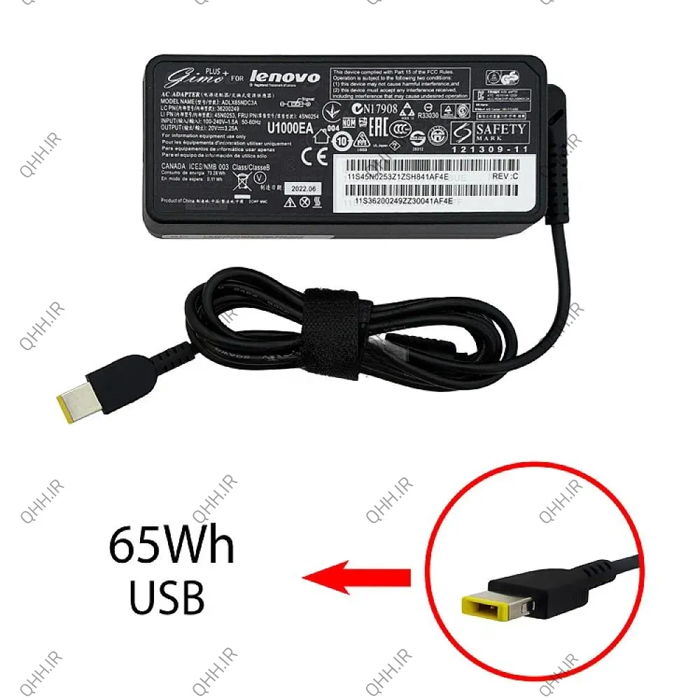 آداپتور لپ تاپ لنوو 20V 3.25A Type C_Gimo Plus مربعی