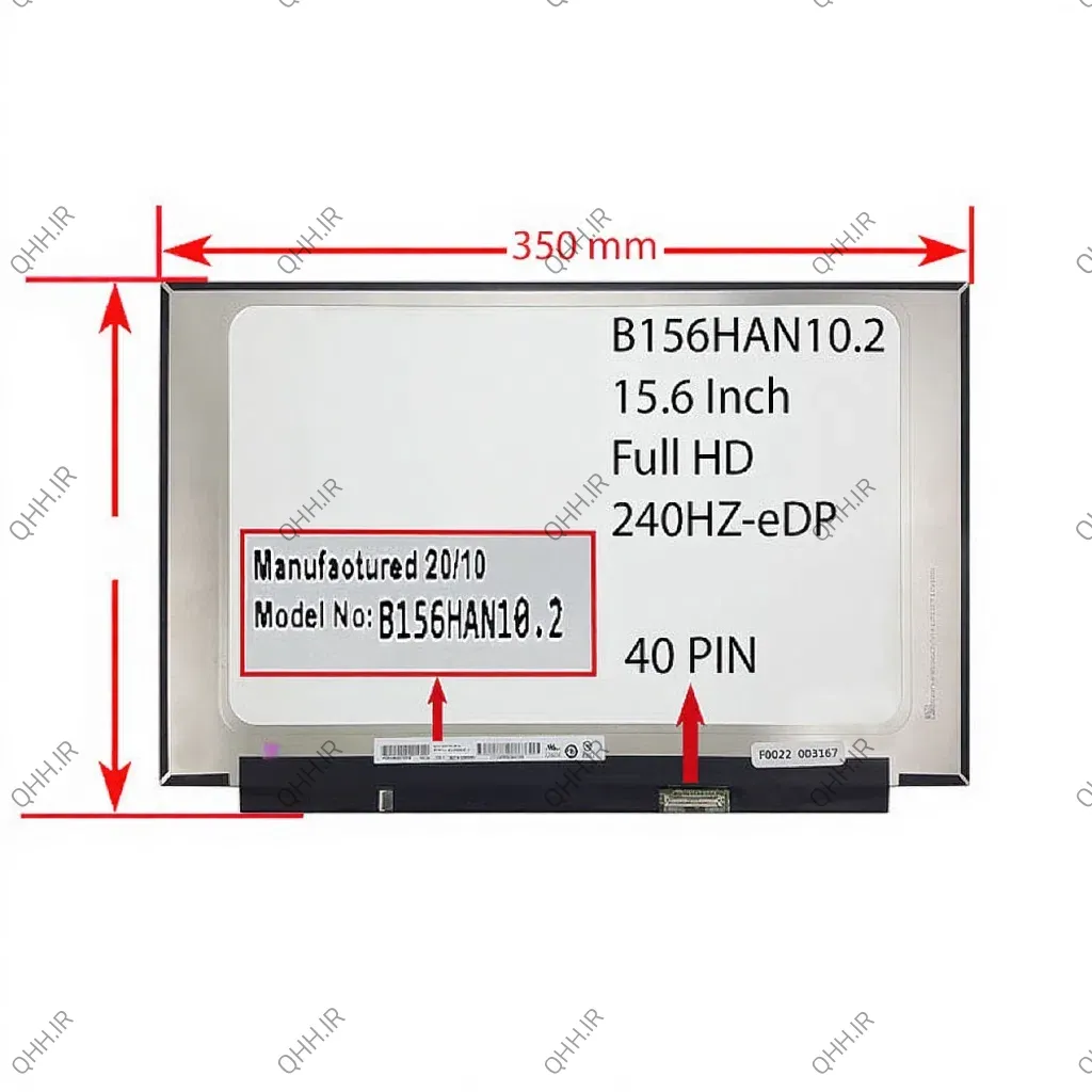 ال ای دی لپ تاپ 15.6 AUO B156HAK02.3_Touch نازک مات 40 پین FHD-EDP بدون جاپیچ 350x216x3.2mm برای دل