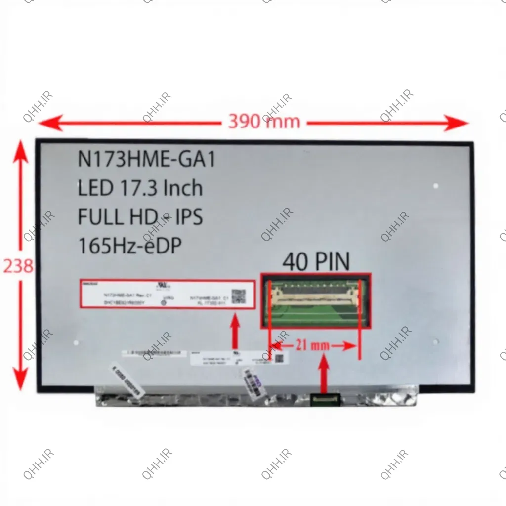 ال ای دی لپ تاپ 17.3 Innolux N173HME-GA1 نازک مات 40 پین ریز FHD-IPS-EDP-165HZ بدون جاپیچ 390x238x3mm