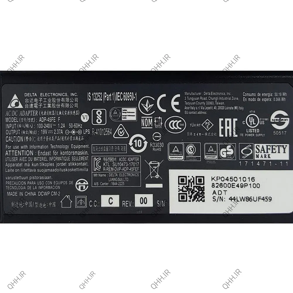 آداپتور لپ تاپ ایسر 19V 2.37A Gimo Plus سرریز 3×1.1mm