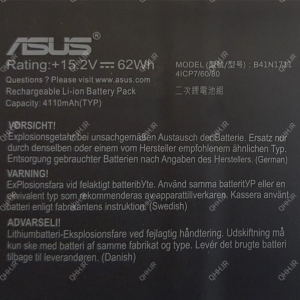 برای خریداری باتری لپ تاپ Asus باید به نوع باتری (اینترنال ، اکسترنال) دقت داشته باشید. برای شناخت مدل باتریهای اینترنال ایسوس میتوانید از پارت نامبری که بر روی باتری نوشته شده است ، کمک بگیرید. پارت نامبر این باتری بصورت B41N1711 می باشد. اگر قصد خرید باطری نوت بوک داشتید شما می توانید قیمت خرید باطری ایسوس GL503 را در این صفحه مشاهده نمایید.