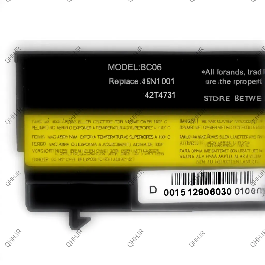 باتری لپ تاپ لنوو تینک پد T430 یک باتری اکسترنال با 6 سلول می باشد. از مشخصات این باتری 6 سلولی اکسترنال می توان به مواردی همچون ولتاژخروجی 10.8-11.7V و ظرفیت 4000MA و توان خروجی 45WH اشاره کرد. هر چقدرباتری لپتاپ توان بالاتری داشته باشد و قویتر عمل کند ، سلولهای استفاده شده در باتری لپتاپ هم قویتر است. اما سلولهای استفاده شده در باتری لپتاپ عمر متوسطی دارند که عمر باتری لپتاپ هم با توجه به همین سلولها محاسبه میشود.