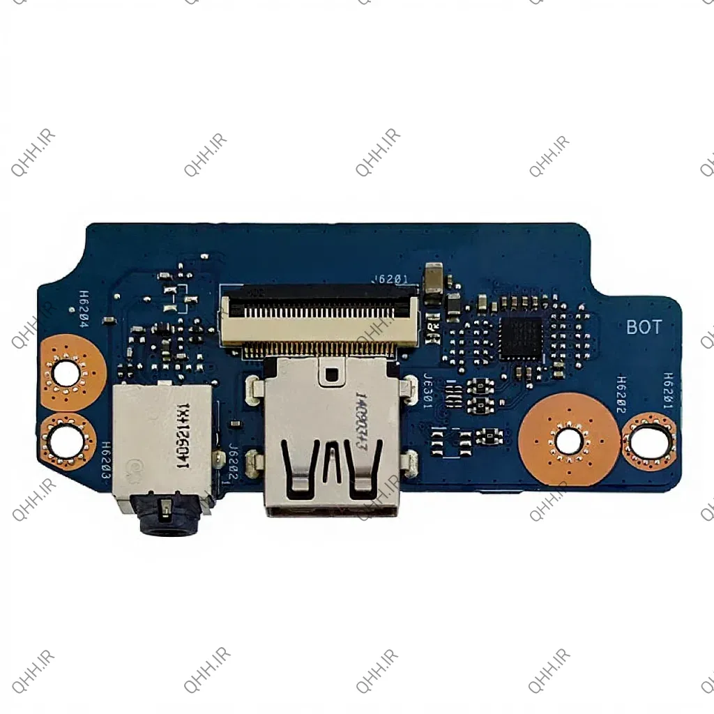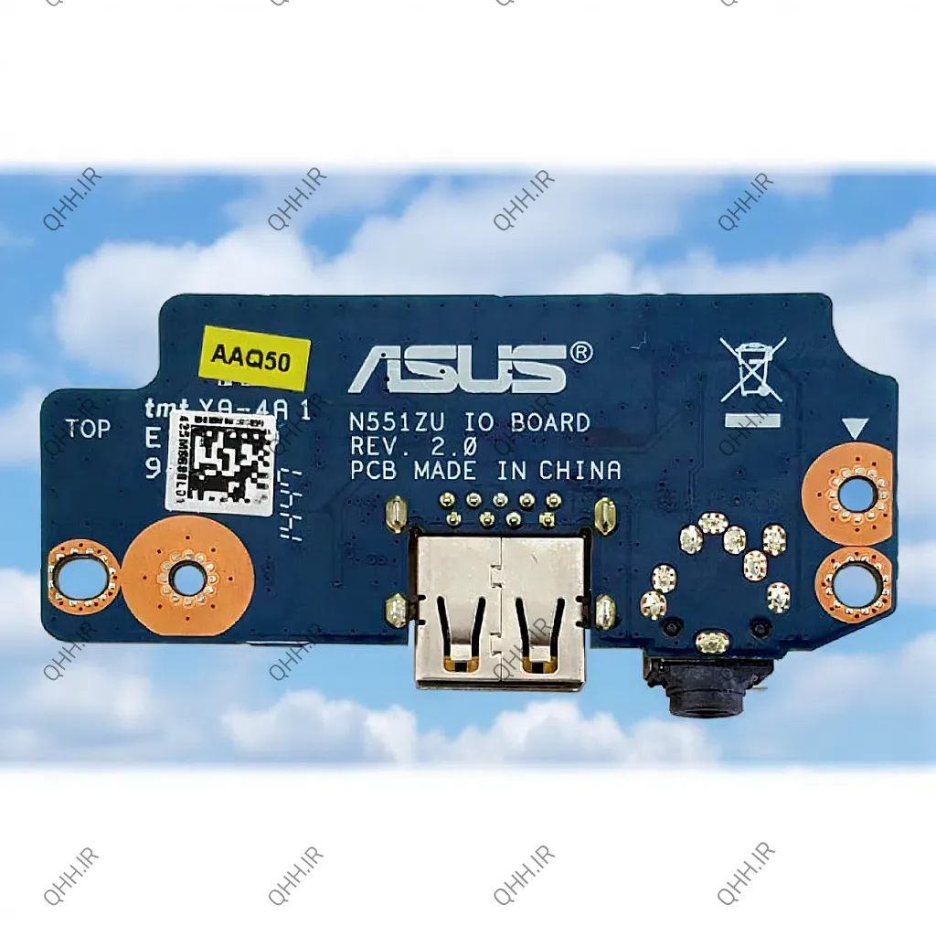 نوت بوک Asus N551ZU کوچکی دارد که به برد یو اس بی و صدا نام برده می شود. USB ها ورودی اطلاعات می باشد با ورود فلش در آن اطلاعات به دستگاه منتقل می گردد و یکی از ورودی های اصلی و رایج امروزه می باشد. این برد توسط فلت های رشته ای به مادربرد متصل می گردد. در صورت قطعی در فلت را شکستگی در لحیم پایه ها باید تعویض نمایید. و بر روی این علاوه بر USB , Headphone نیز دارد. جک های صدا بر روی آن لحیم شده است شما با وارد کردن هدفون به آن می توانید صدا را در آن گوش کنید. این برد توسط فلت های رشته ای با سایز های مربوطه به مادربرد متصل گردیده و این اتصال باعث می شود که برد کارایی داشته باشد.