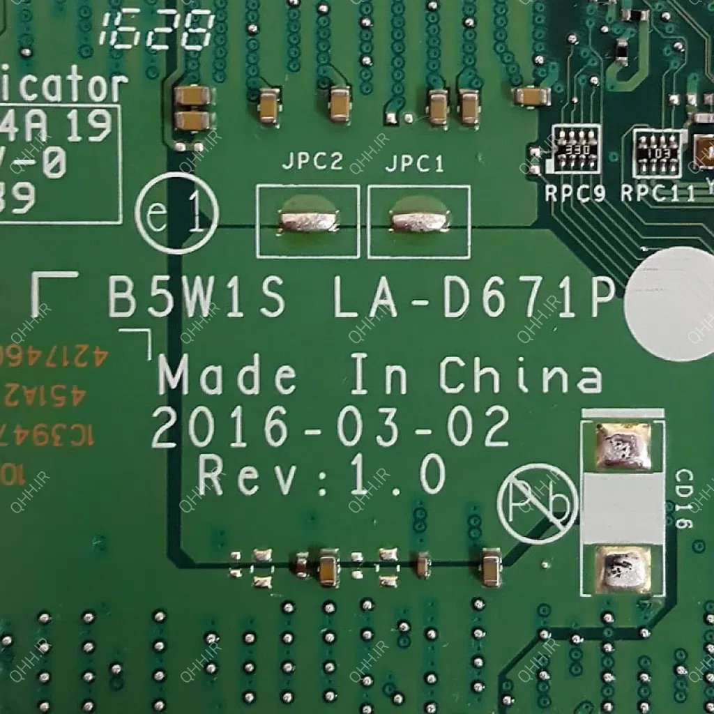 مادربرد لپ تاپ ایسر Aspire ES1-572_CPU-I3-6100U_B5W1S_LA-D671P گرافیک اینتلی