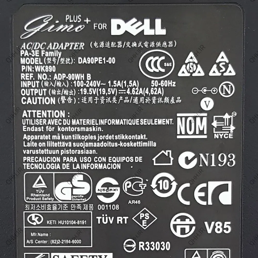 Adaptor Laptop Dell 19.5V 4.62A Slim Gimo Plus.