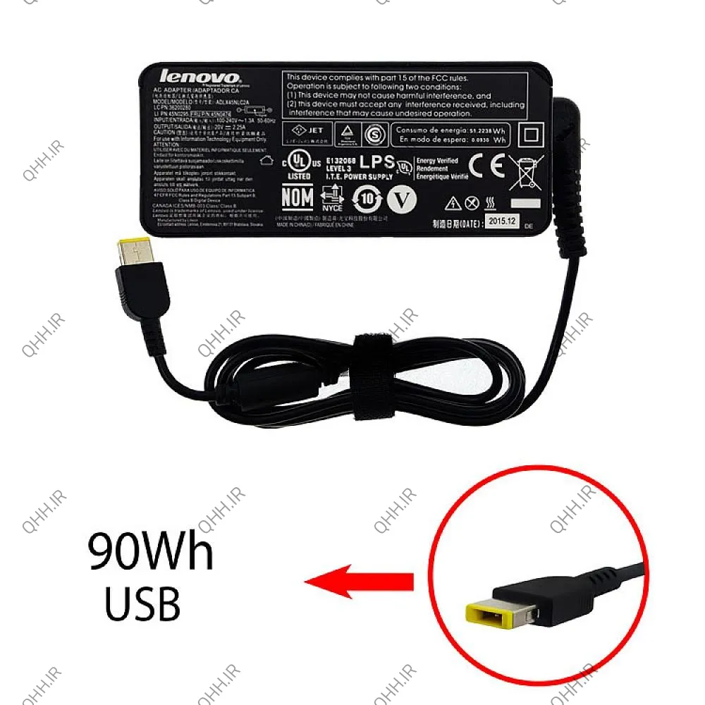 / آداپتور لپ تاپ لنوو 20V 2.25A Gimo Plus سر یو اس بی کابل دو تایی