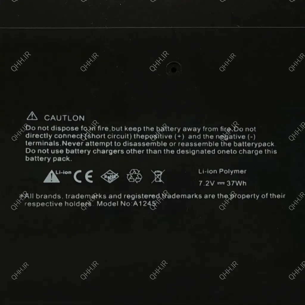باتری لپ تاپ Apple A1245 یک باتری داخلی با ویژگی هایی مانند: ولتاژ خروجی 7.2V و توان خروجی 37WH در بازار به فروش می رسد. هنگام تهیه باتری لپ تاپ اپل حتما به سال ساخت دستگاه نیز دقت نمایید که سال ساخت مربوط به این باتری بصورت La 2009 – Ea 2008 (اواخر 2009 – اوایل 2008) می باشد. در مورد باتری های داخلی دقت کنید که سوکت ممکن است روی باطری باشد یا با سیم به مادربرد متصل شود که در این مدل سوکت توسط سیم به مادربرد متصل می شود.