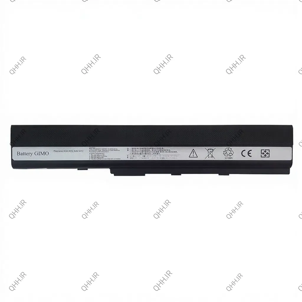 باتری ایسوس نوت بوک K52 یک باتری اکسترنال 6 سلولی می باشد. توان خروجی این باطری 45WH و ظرفیت آن 4000MA و ولتاژ خروجی 10.8-11.7 ولت می باشد. بعد از خرید باطری برای افزایش طول عمر مفید باطری می توانید مقاله نکات مهم در نگهداری از باتری را مطالعه نمایید و از مواردی که می توان به آن اشاره کرد شارژ و دشارژ کردن باطری در طول هفته 2 یا 3 بار به صورتی که شارژ باتری کمتر از 15 درصد نشود.