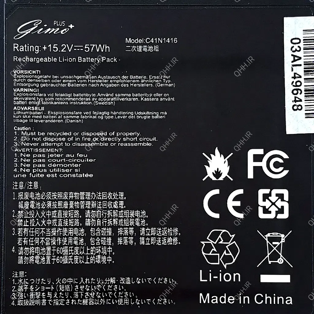 باتری لپ تاپ ایسوس ROG G501_ZenBook UX501_C41N1416 Gimo Plus مشکی-داخلی-57 وات ساعت