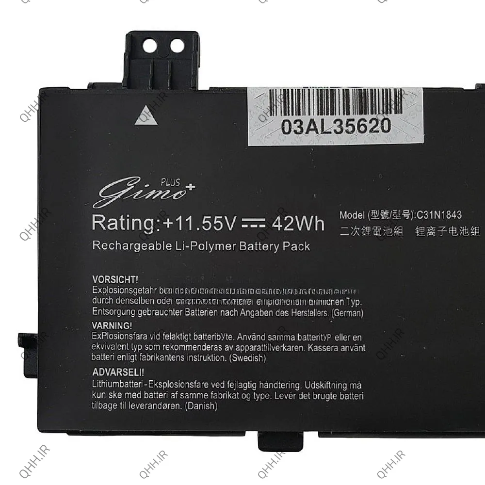 باتری لپ تاپ ایسوس VivoBook S432 باتری اینترنال (داخلی ) و با ظرفیت 42 وات ساعت ، عملکرد خوبی را در استفاده روزمره ارائه می دهد. این باتری به خوبی برای مصارف معمولی مانند کارهای اداری ، مرور وب و تماشای ویدیوها مناسب است. در این مدل از لپ تاپ ایسوس ، باتری داخلی مدل ویووبوک S432 با مدل S14 مشابه می باشد و این باتری با پارت نامبر (C31N1843) شناخته می شود و با ظرفیت 42 وات ساعت به کار رفته است و دارای ولتاژ خروجی 11.55 ولت می باشد که ظرفیت مناسبی برای یک لپ تاپ 14 اینچی محسوب می شود.این باتری از نوع لیتیوم- یونی بوده و در مقایسه با باتری های قدیمی تر، انرژی بیشتری را در حجم کمتری ذخیره می نماید ، به همین دلیل وزن کمتری به دستگاه می دهد و فضای داخلی آن بهینه تر است.
