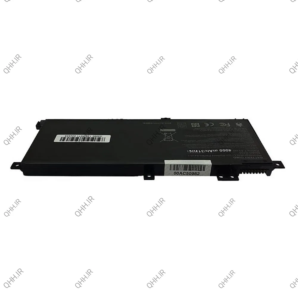 باطری لپ تاپ ایسوس مدل X456 یک باتری داخلی است. از ویژگی های این باتری می توان به مواردی مثل ولتاژ خروجی 7.6V و ظرفیت 4000MA و توان خروجی 31WH اشاره کرد. برای تشخیص مدل باتری های ایسوس می توان از پارت نامبر که روی باتری های اینترنال است ، استفاده کرد. در این باتری پارت نامبر به صورت C21N1508 می باشد.