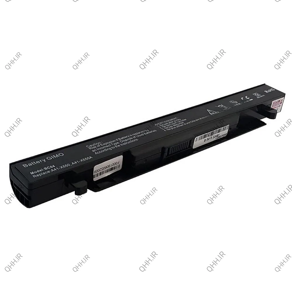 باتری Asus X550 یک باتری 4 سلولی اکسترنال می باشد. از مشخصات این باتری می توان به مواردی مثل ولتاژ خروجی 14.4-15.6 ولت و توان خروجی 30Wh و ظرفیت 2000mA اشاره کرد. لازم بذکر است نکته مهم در نگه داری از باطری لپ تاپ نیامدن درصد شارژ باطری زیر 15 درصد است ، زیرا در صورت پایین آمدن این درصد شوک وارد شده به باطری از طول عمر مفید آن می کاهد.
