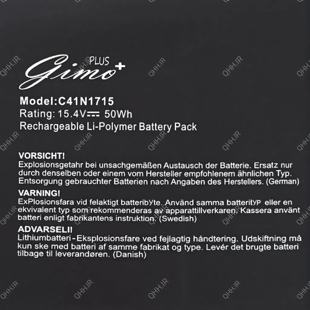 برای تشخیص مدل باتری های برند ASUS می توانید از پارت نامبر روی باتری که با حروف C شروع می شود و روی تمامی باتری های این برند ثبت شده است استفاده کنید. پارت نامبر روی این باتری بصورت C41N1715 می باشد.