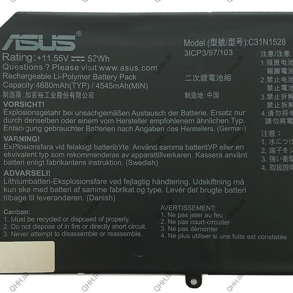 هنگام خرید باتری لپ تاپ برند Asus باید به نوع باتری ( اینترنال ، اکسترنال ) توجه کرد. برای شناختن مدل باتریهای داخلی ایسوس میتوانید از پارت نامبری که بر روی باتری وجود دارد ، کمک بگیرید. پارت نامبر این باتری داخلی بصورت C31N1528 می باشد.