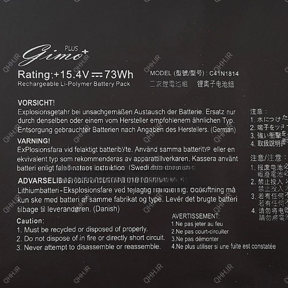 سایت کامپیوترخانه سخت افزار قم باتری های موجود را با برندهای Gimo و +Gimo و با 6 و 9 ماه تعویض QHH و با 7 روز کالا ارائه می نماید.