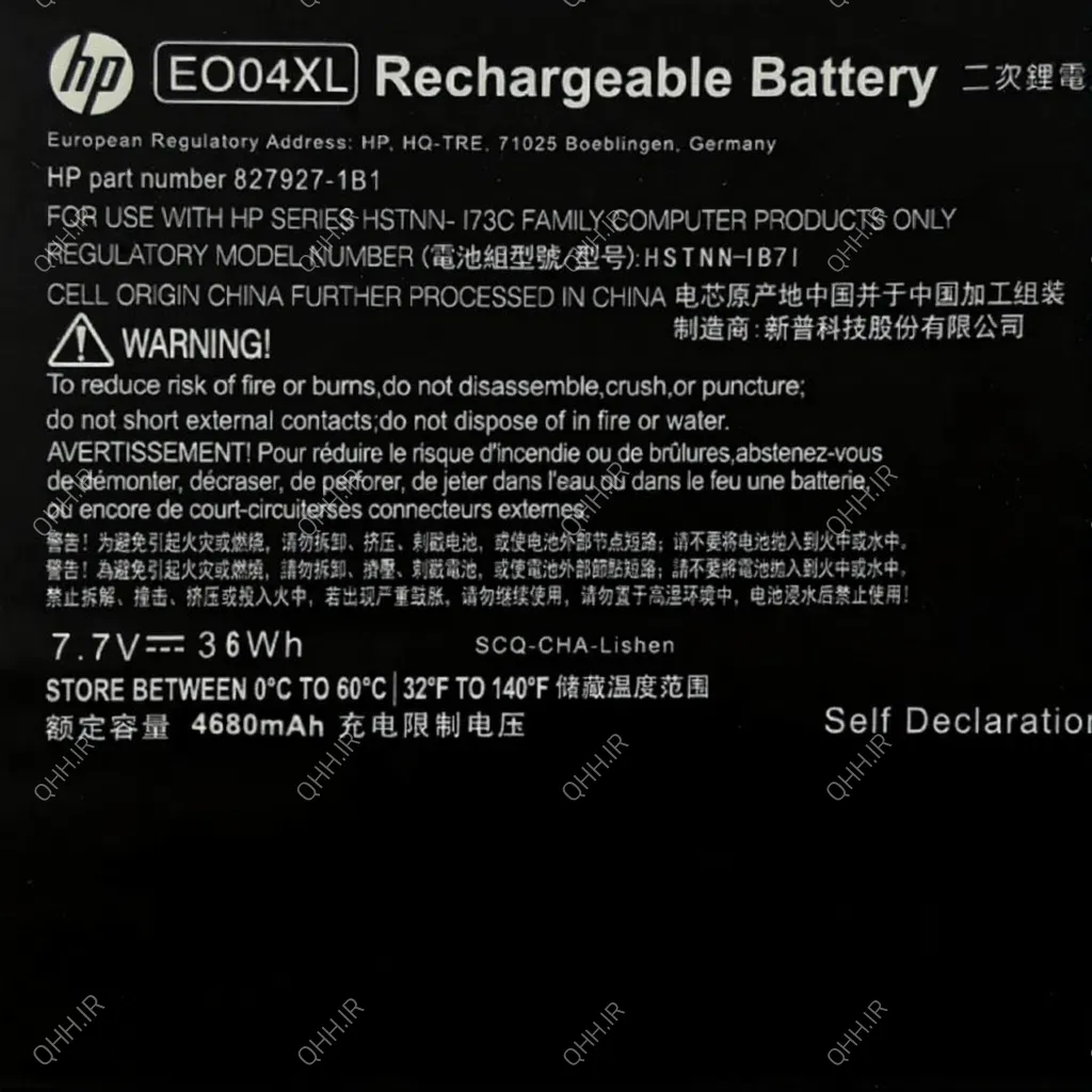 برای تشخیص مدل باتری های داخلی برند HP میتوانید از Hstnn روی باتری که ترکیبی از 6 عدد و حروف است که روی تمام باطری های اچ پی ثبت شده است استفاده نمایید.در این باتری داخلی Hstnn بصورت EO04XL ثبت شده است.اگر قصد خرید باطری نوت بوک داشتید شما می توانید قیمت خرید انواع باطری Folio G1 را مشاهده نمایید.