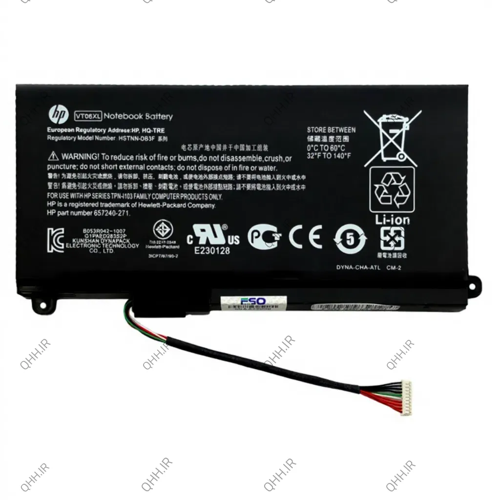 برای تشخیص مدل باتری های داخلی برند HP میتوانید از Hstnn روی باتری که ترکیبی از 6 عدد و حروف است که روی تمام باطری های اچ پی ثبت شده است استفاده نمایید.در این باتری اینترنال Hstnn بصورت VT06XL می باشد. اگر قصد خرید باطری نوت بوک داشتید شما می توانید قیمت خرید انواع باطری ENVY 17T-3000 را مشاهده نمایید.