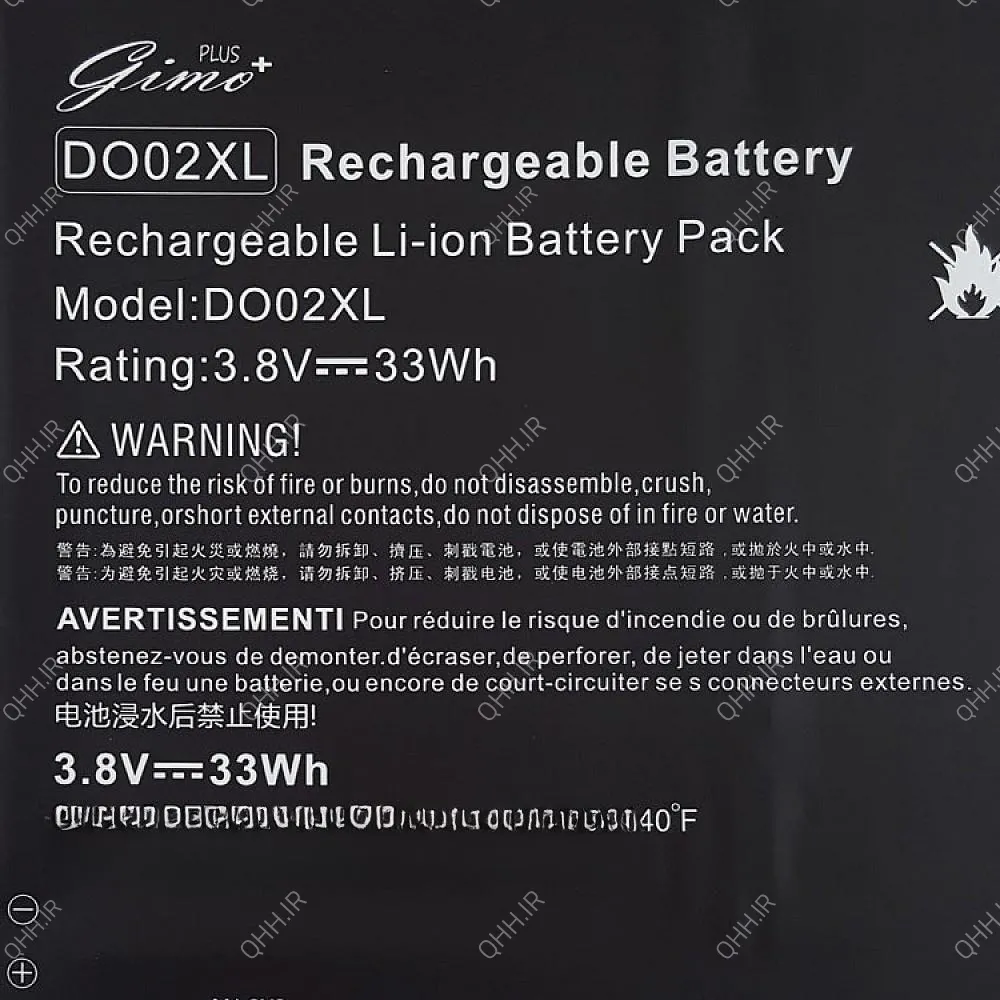 برای تشخیص مدل باتری های برند HP میتوانید از کارد مستطیل شکلی که روی باتری وجود دارد و ترکیبی از عدد و حروف است که روی تمام باطری های اچ پی ثبت شده است ، استفاده نمایید. روی این باتری بصورت باتری لپ تاپ اچ پی پاویلیون DO02XL ثبت شده است.