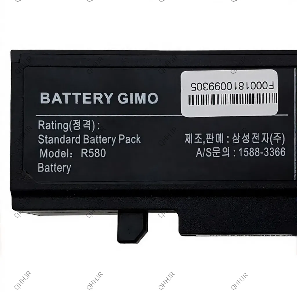 باتری لپ تاپ سامسونگ R580 یک باتری External با 6 سلول می باشد. این باتری External دارای ویژگی های همچون ولتاژخروجی 10.8~11.7V و ظرفیت 4000MA و توان خروجی 45WH است. نکته مهم در استفاده از باطری این است که بهتر است باطری لپ تاپ شما حداقل هفته ای 3 تا 4 بار شارژ کامل و خالی شود و شارژ باطری زیر 15 درصد نیاید.
