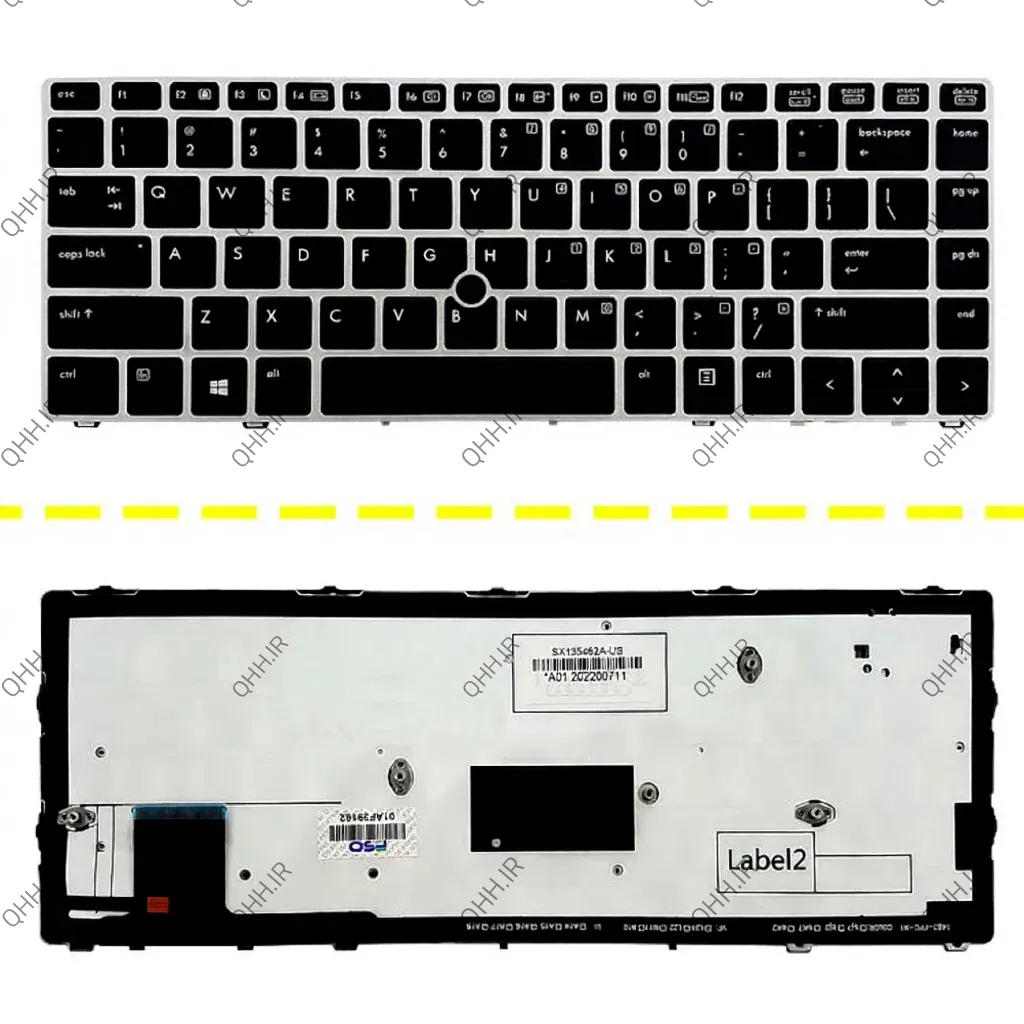 کیبرد لپ تاپ اچ پی EliteBook Folio 9470M مشکی-با موس و بک لایت-با فریم نقره ای