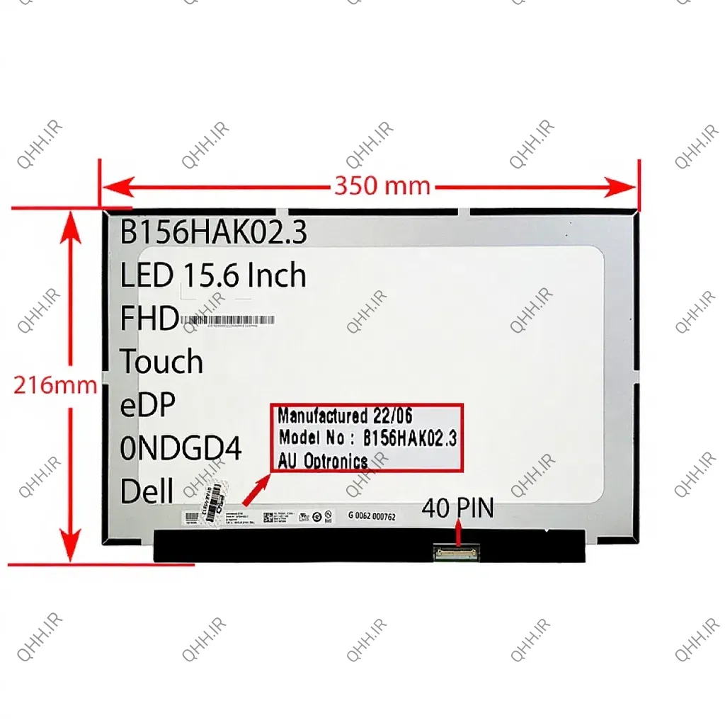 توجه: ال ای دی LED Laptop AUO 15.6_B156HAK02.3_Touch_Slim 40Pin FHD-EDP_350x216x3.2mm مخصوص لپ تاپ های دل می باشد.