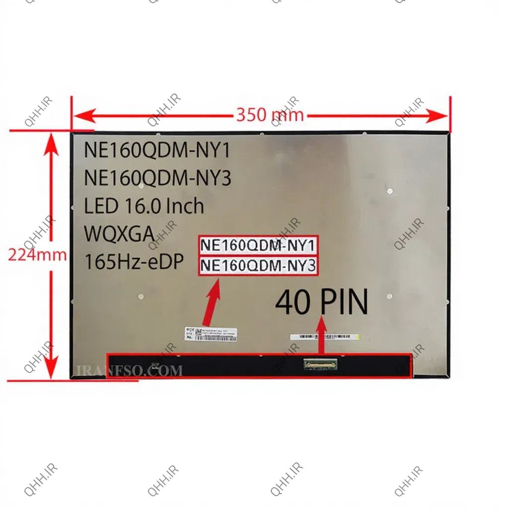 ال ای دی لپ تاپ 16.0 NE160QDM-NY1_NY3 نازک مات 40 پین WQXGA-EDP-165HZ بدون جاپیچ 350x224x3.9mm برد پشت LED