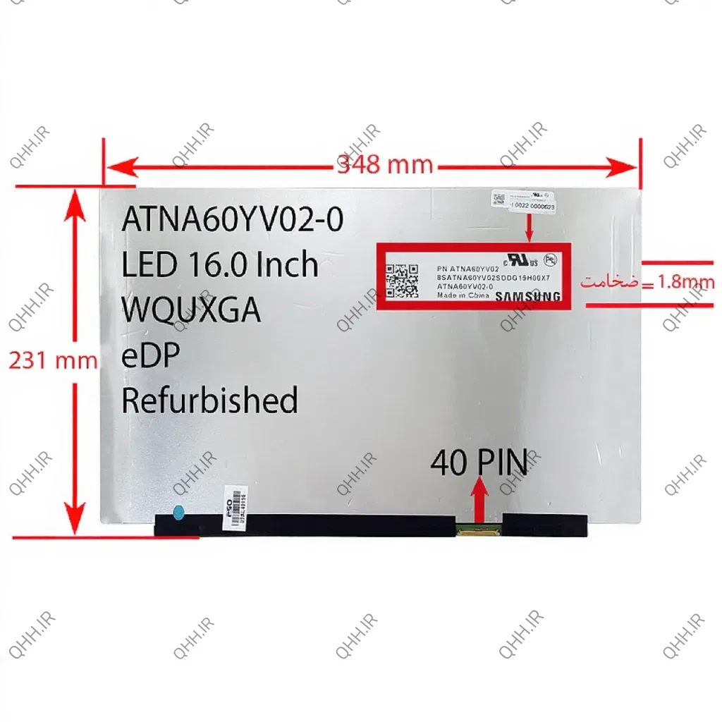 ال ای دی لپ تاپ 16.0 ATNA60YV02-0_Grade A نازک براق 40 پین WQUXGA-EDP-OLED بدون جاپیچ 348x231x1.8mm