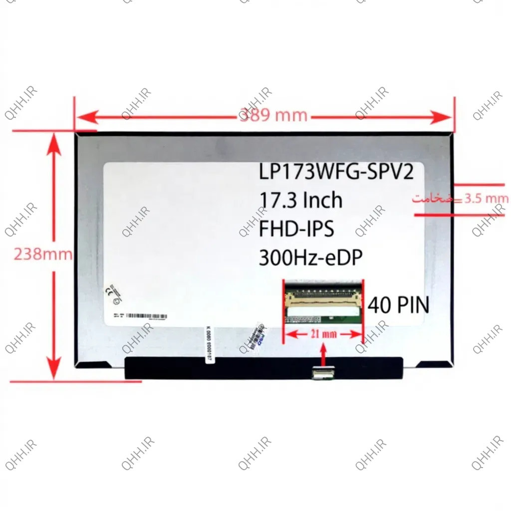 ال ای دی لپ تاپ 17.3 نازک مات 40 پین ریز FHD-EDP-IPS-300Hz بدون جاپیچ 389x238x3.5mm