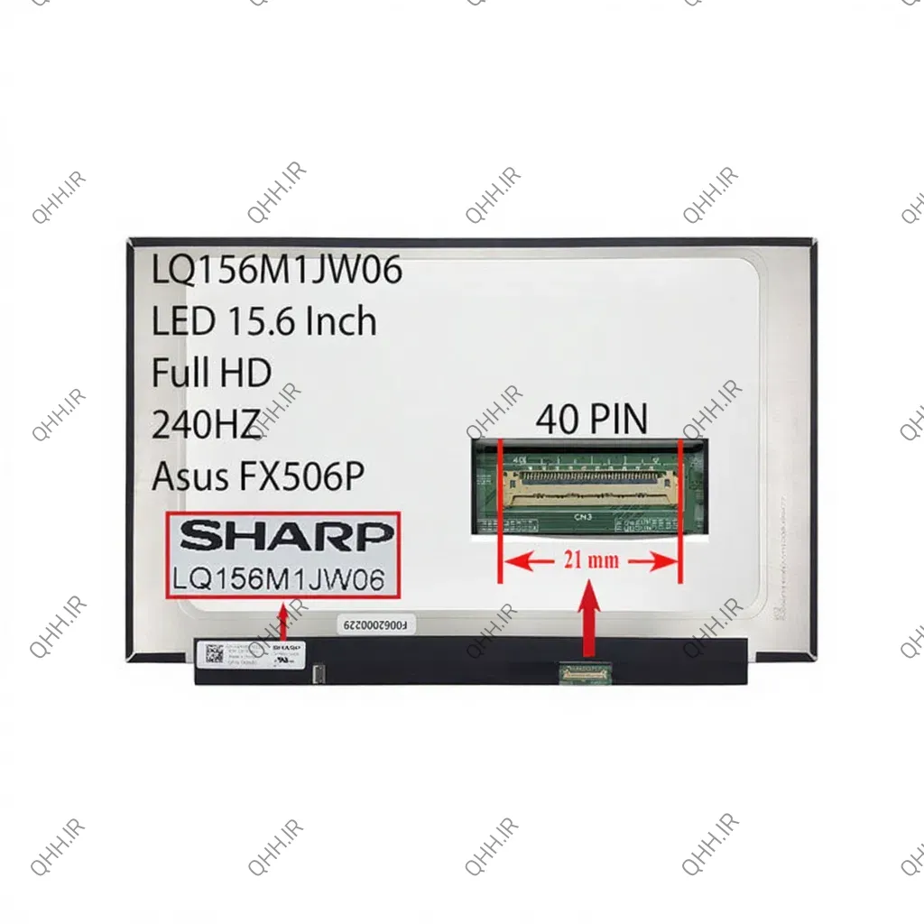 ال ای دی لپ تاپ شارپ 15.6 LQ156M1JW06 نازک مات 40 پین ریز FHD-240HZ بدون جاپیچ 350x215x2.6mm برای ایسوس FX506P